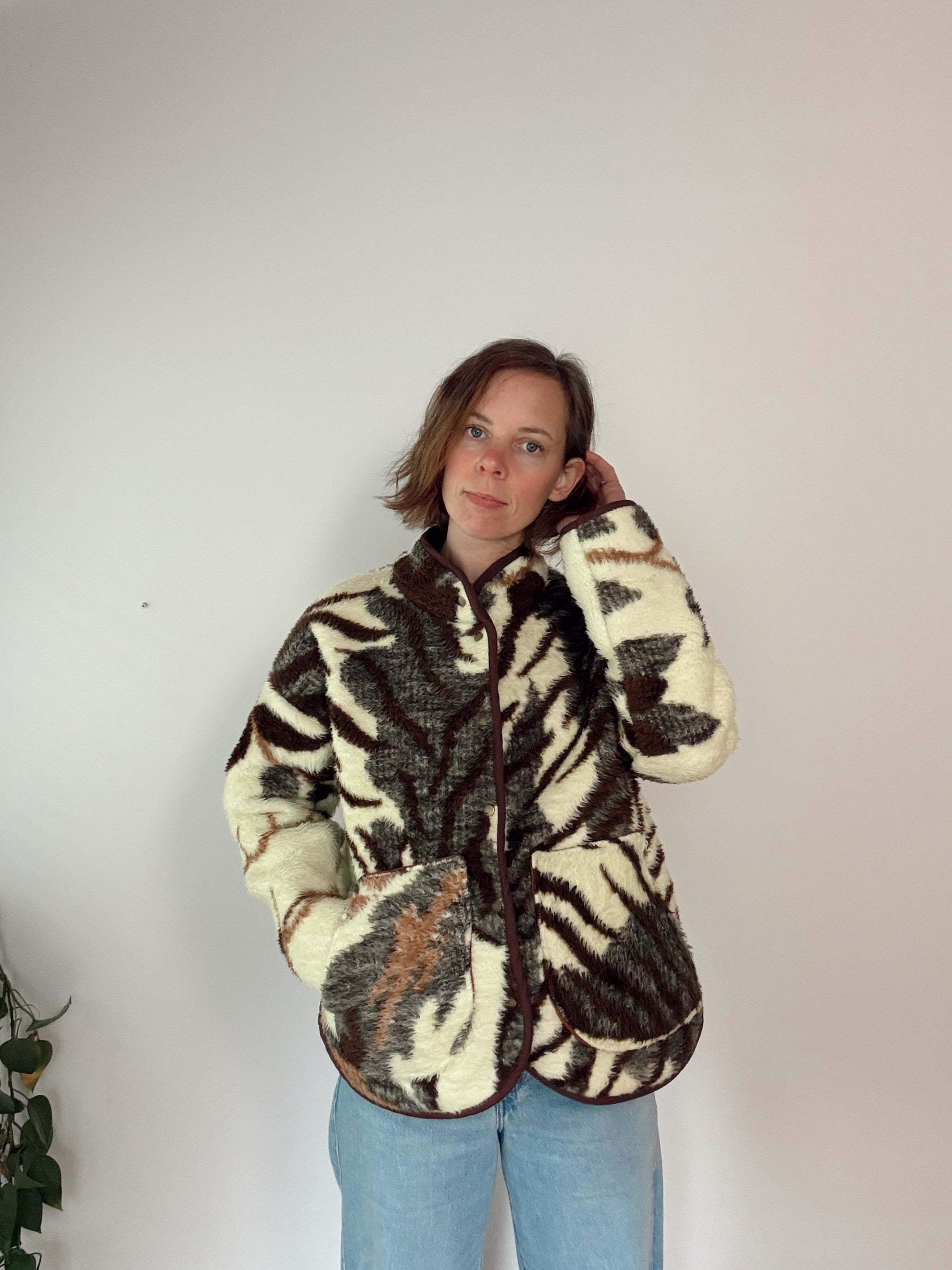 Made from a thick vintage wool blanket, this leopard jacket is a statement piece!