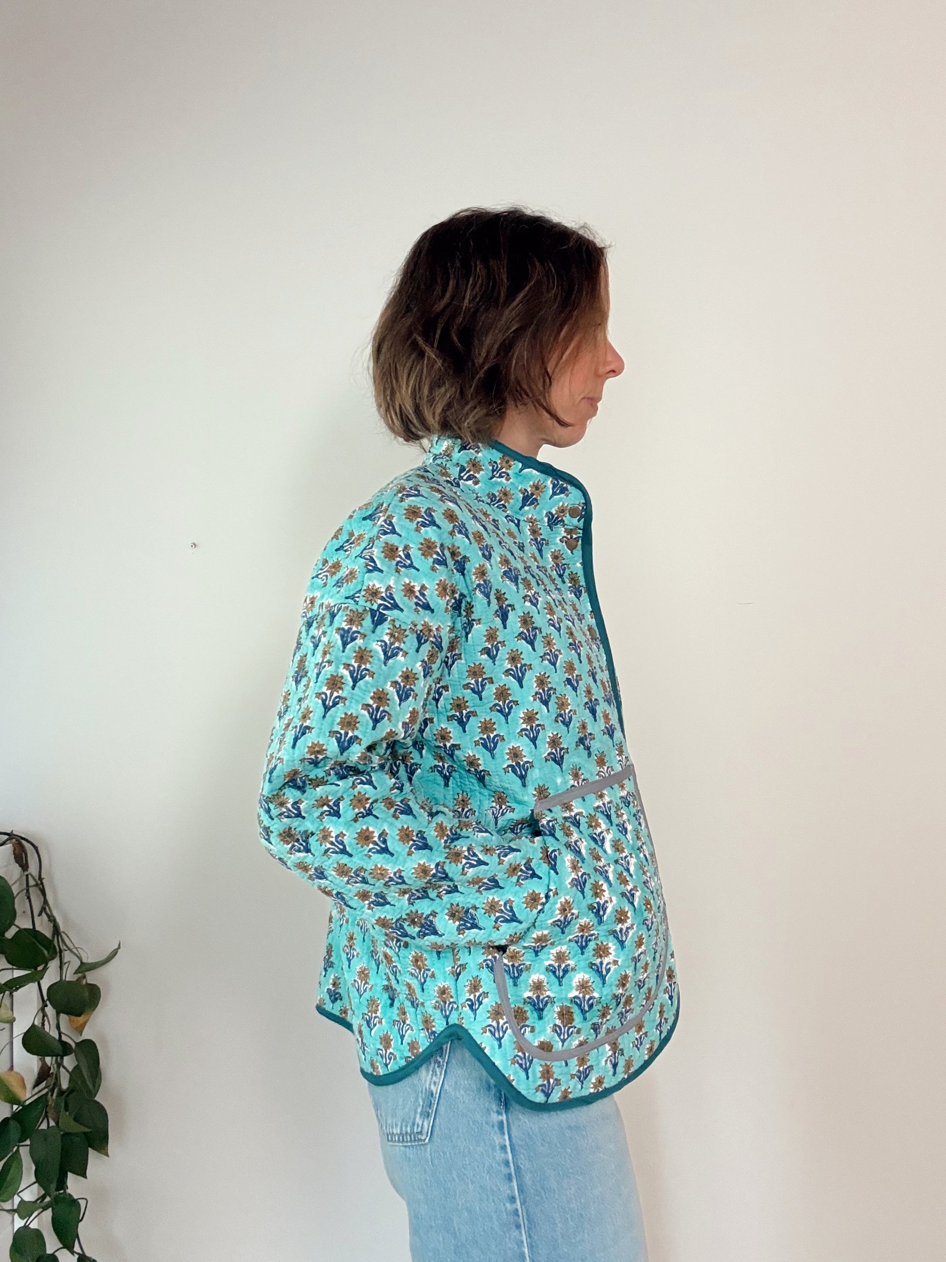 Turquoise Block Print Flora Jacket Sample - Small
