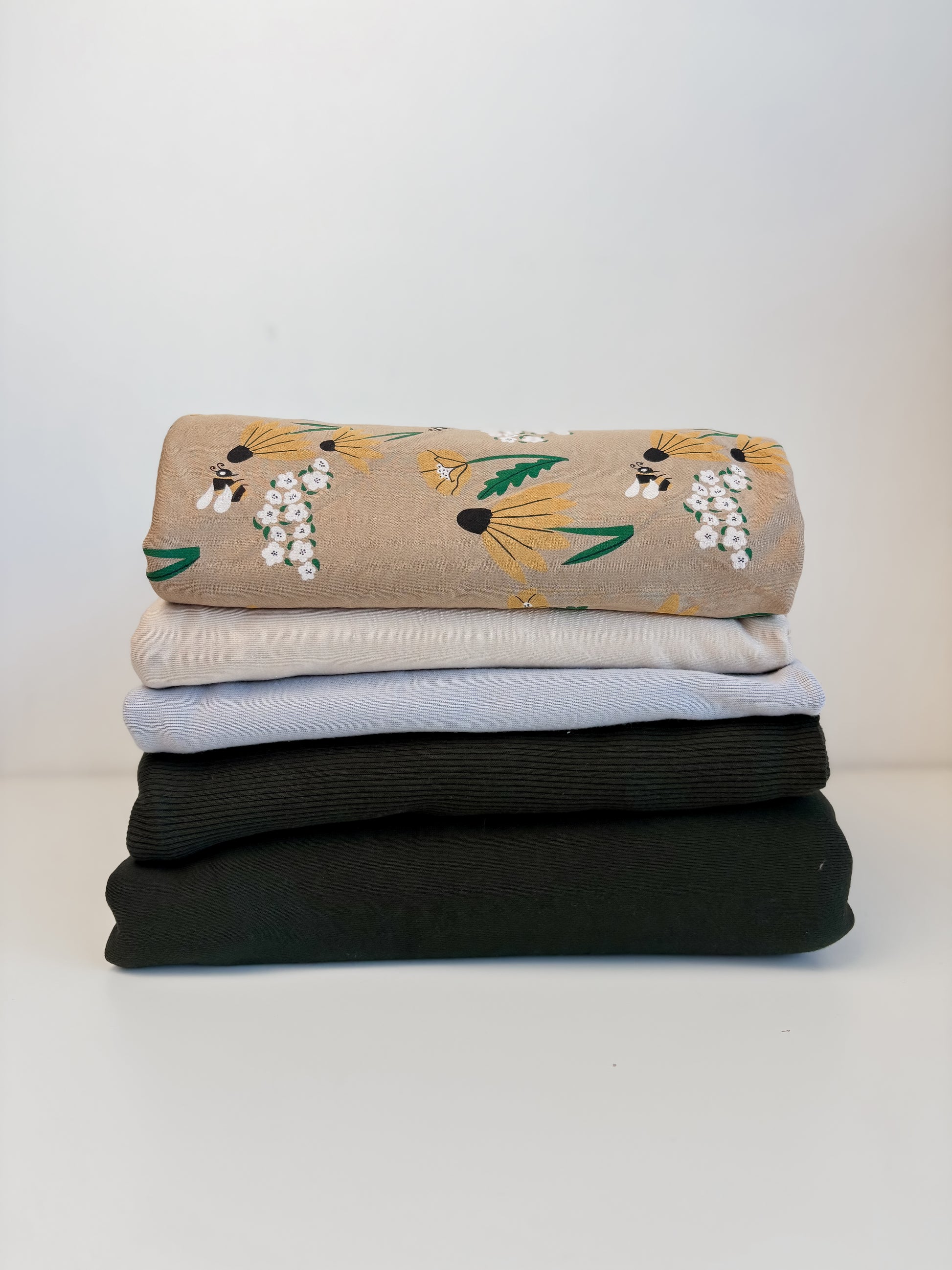 12 bundles straight from my hoardy little hands. 3-5.5 yards per bundle of unwashed fabric - well loved Little & Lively prints, American Milled Solids, Euro prints, bamboo/cotton solids. Canadian Milled solids.